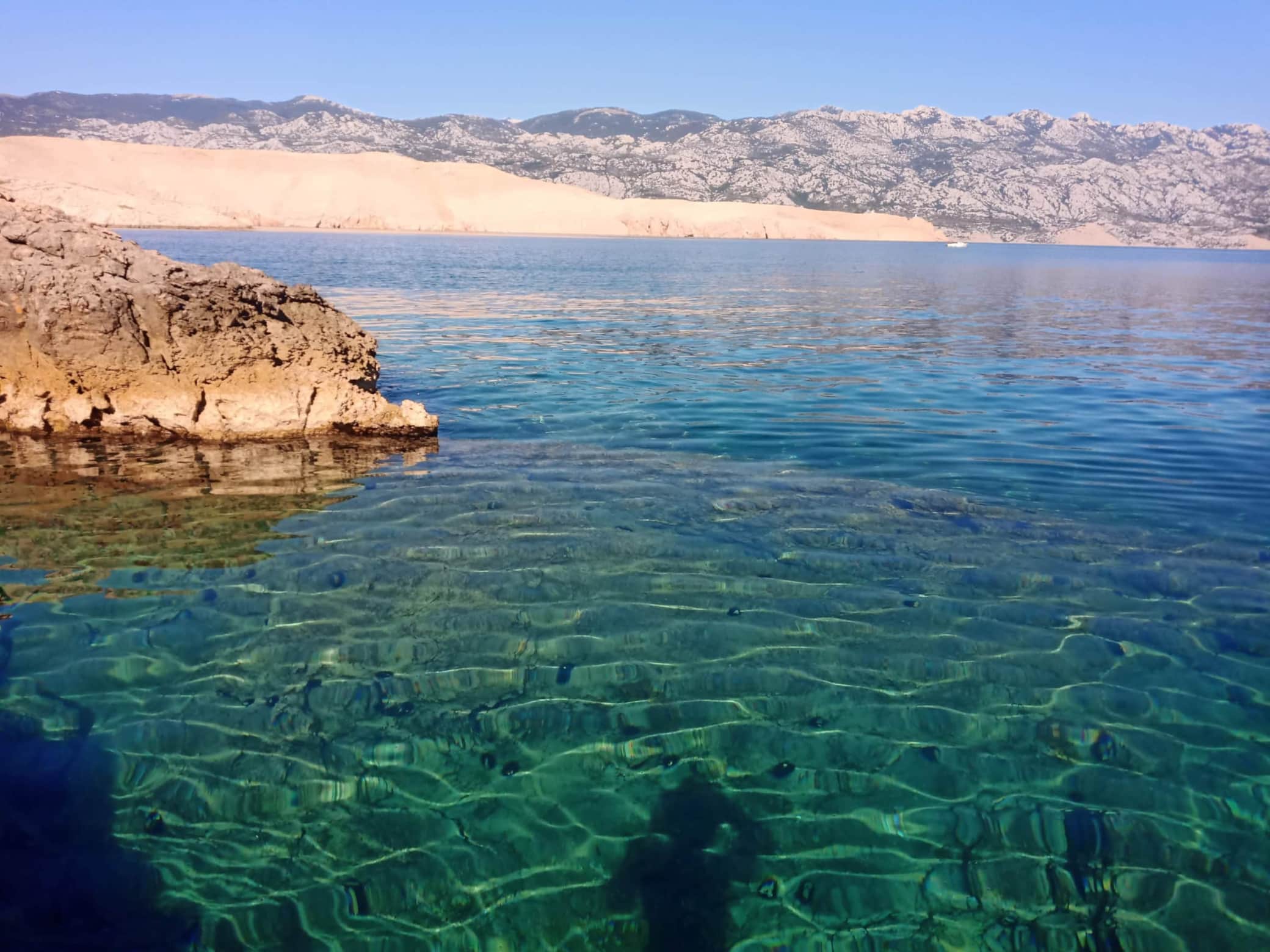 Surrounded by white rocks and crystal clear blue-green waters.